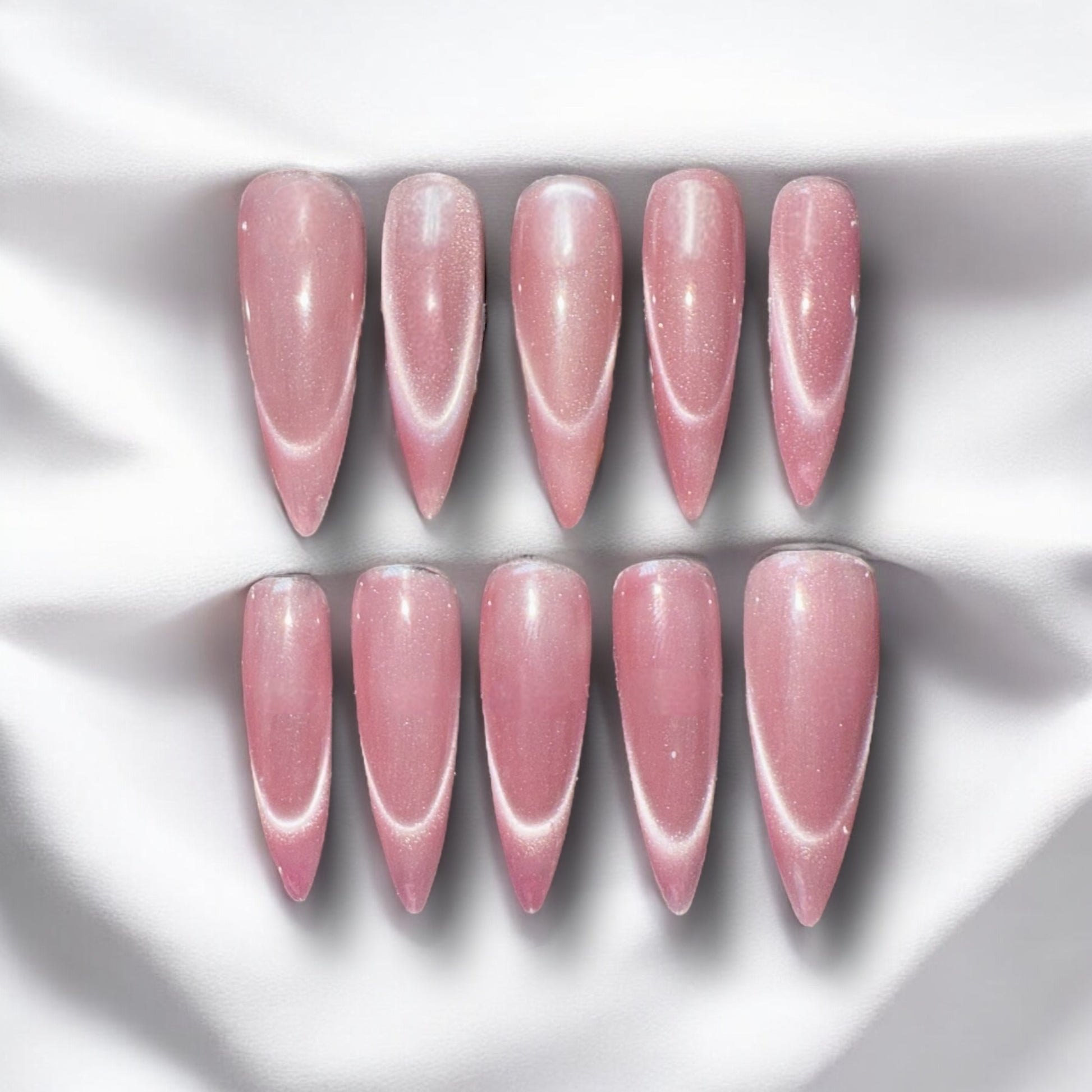 Delicate blush tones melt into a glowing highlight, creating a radiant aura effect that shifts with your every gesture. Think French manicure, reimagined—for the elegant, the ethereal, the effortlessly chic.